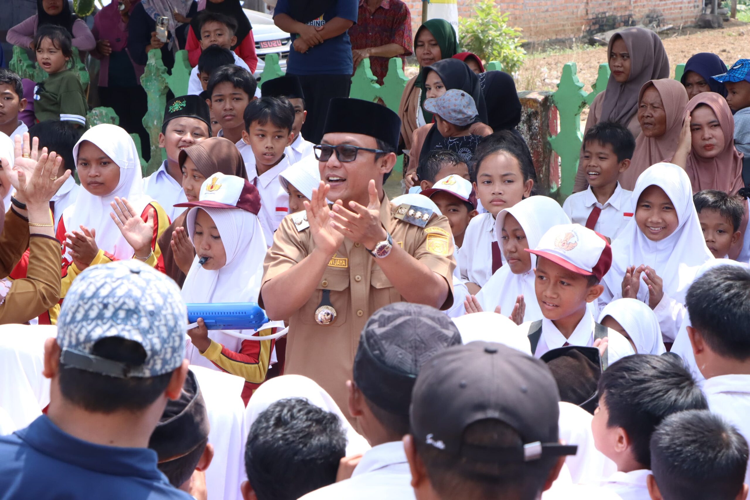 Lampung Tengah – Dalam agenda kunjungan kerjanya meninjau progres peningkatan ruas Jalan Buyut Ilir – Tanggul Angin, Bupati Lampung Tengah, H. Ardito Wijaya, turut menyoroti pentingnya pemenuhan gizi anak sekolah. Pada Senin (11/08/2025), Bupati Ardito menyempatkan diri mengunjungi SD Negeri 3 Buyut Ilir, Kecamatan Gunung Sugih, dan membagikan susu kepada puluhan siswa-siswi sebagai bentuk dukungan nyata terhadap program strategis pemerintah pusat mengenai peningkatan gizi anak usia sekolah.