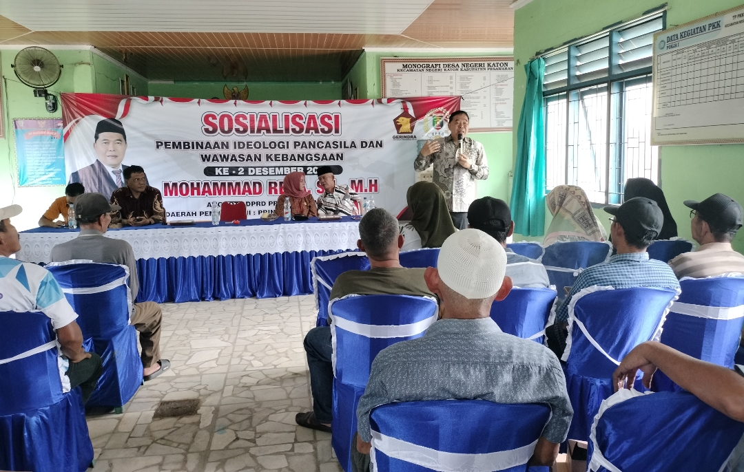Pesawaran – Komitmen DPRD Provinsi Lampung dalam memperkuat ideologi Pancasila terus diwujudkan hingga ke tingkat desa. Anggota DPRD Provinsi Lampung, Mohammad Reza Berawi, kembali melaksanakan Sosialisasi Pembinaan Ideologi Pancasila dan Wawasan Kebangsaan bersama masyarakat Desa Negeri Katon, Kecamatan Negeri Katon, Kabupaten Pesawaran, Minggu (14/12/2025).