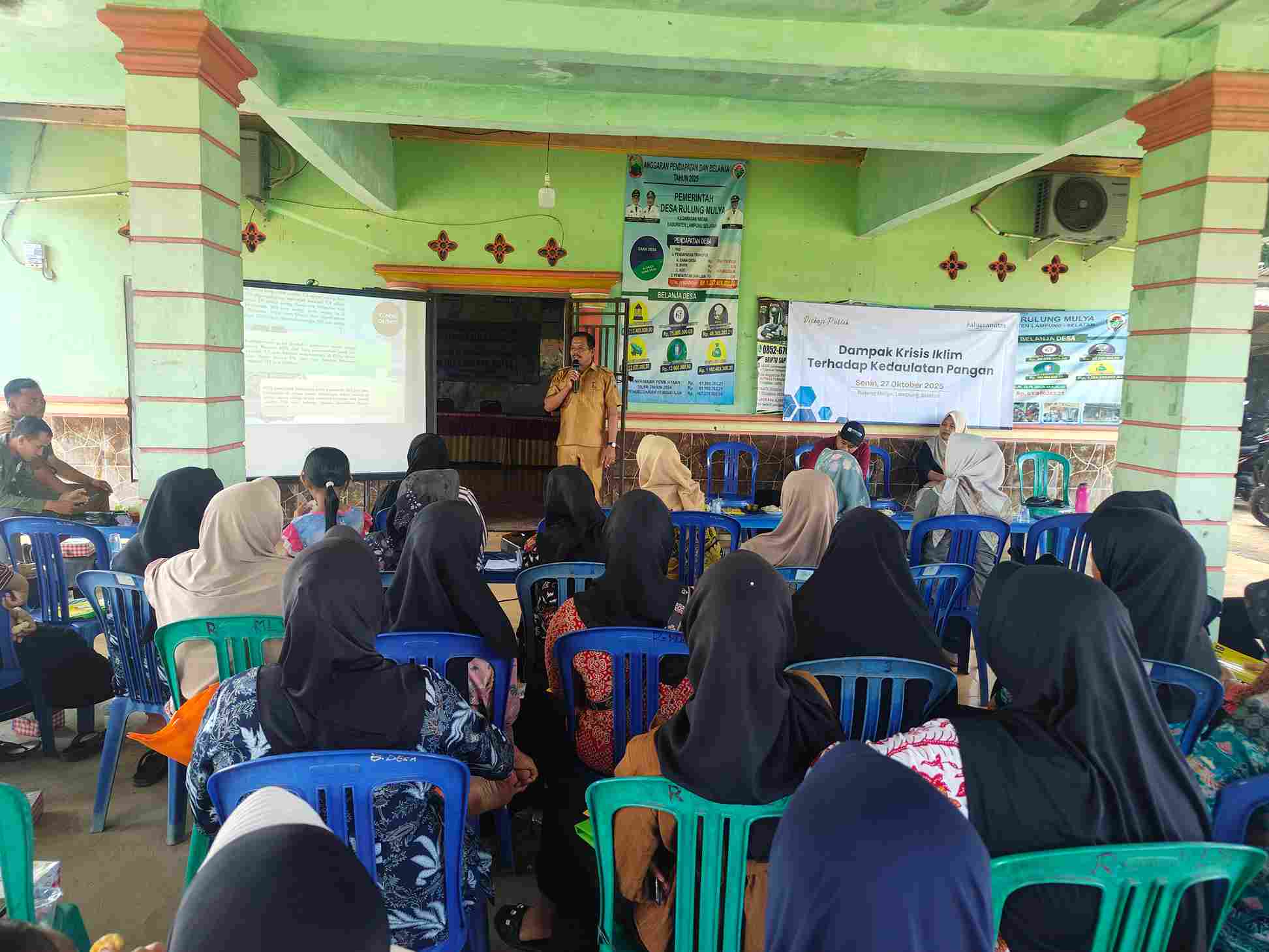 Lampung Selatan — Dalam upaya meningkatkan kesadaran masyarakat terhadap perubahan iklim dan dampaknya terhadap kedaulatan pangan, organisasi perempuan Kalyanamitra menggelar Diskusi Publik bertema “Dampak Krisis Iklim terhadap Kedaulatan Pangan”, Senin (27/10/2025), di Balai Desa Rulung Mulya, Kecamatan Natar, Kabupaten Lampung Selatan.