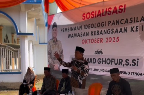 Lampung Tengah – Anggota DPRD Provinsi Lampung, Muhammad Ghofur, melaksanakan kegiatan Sosialisasi Pembinaan Ideologi Pancasila dan Wawasan Kebangsaan (PIPWK) pertama di bulan Oktober 2025. Kegiatan ini menjadi bagian dari upaya berkelanjutan DPRD Lampung dalam memperkuat pemahaman masyarakat terhadap nilai-nilai Pancasila sebagai dasar kehidupan berbangsa dan bernegara.