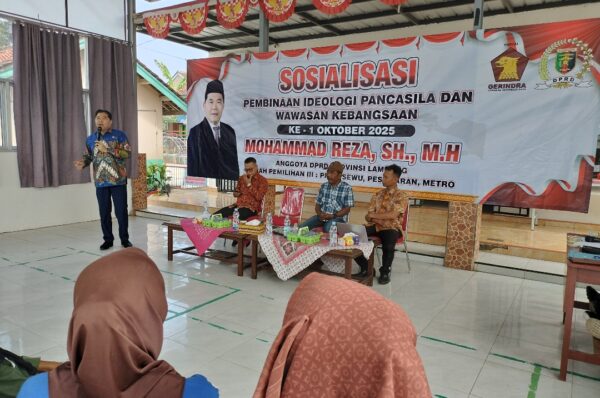 Pringsewu — Anggota DPRD Provinsi Lampung, Mohammad Reza Berawi, menegaskan pentingnya penerapan nilai-nilai Pancasila dalam kehidupan sehari-hari sebagai dasar membangun kebersamaan dan memperkuat keutuhan bangsa. Pesan itu disampaikan saat dirinya melaksanakan Sosialisasi Pembinaan Ideologi Pancasila dan Wawasan Kebangsaan di Pekon Ambarawa Timur, Kecamatan Ambarawa, Kabupaten Pringsewu, Sabtu (11/10/2025).