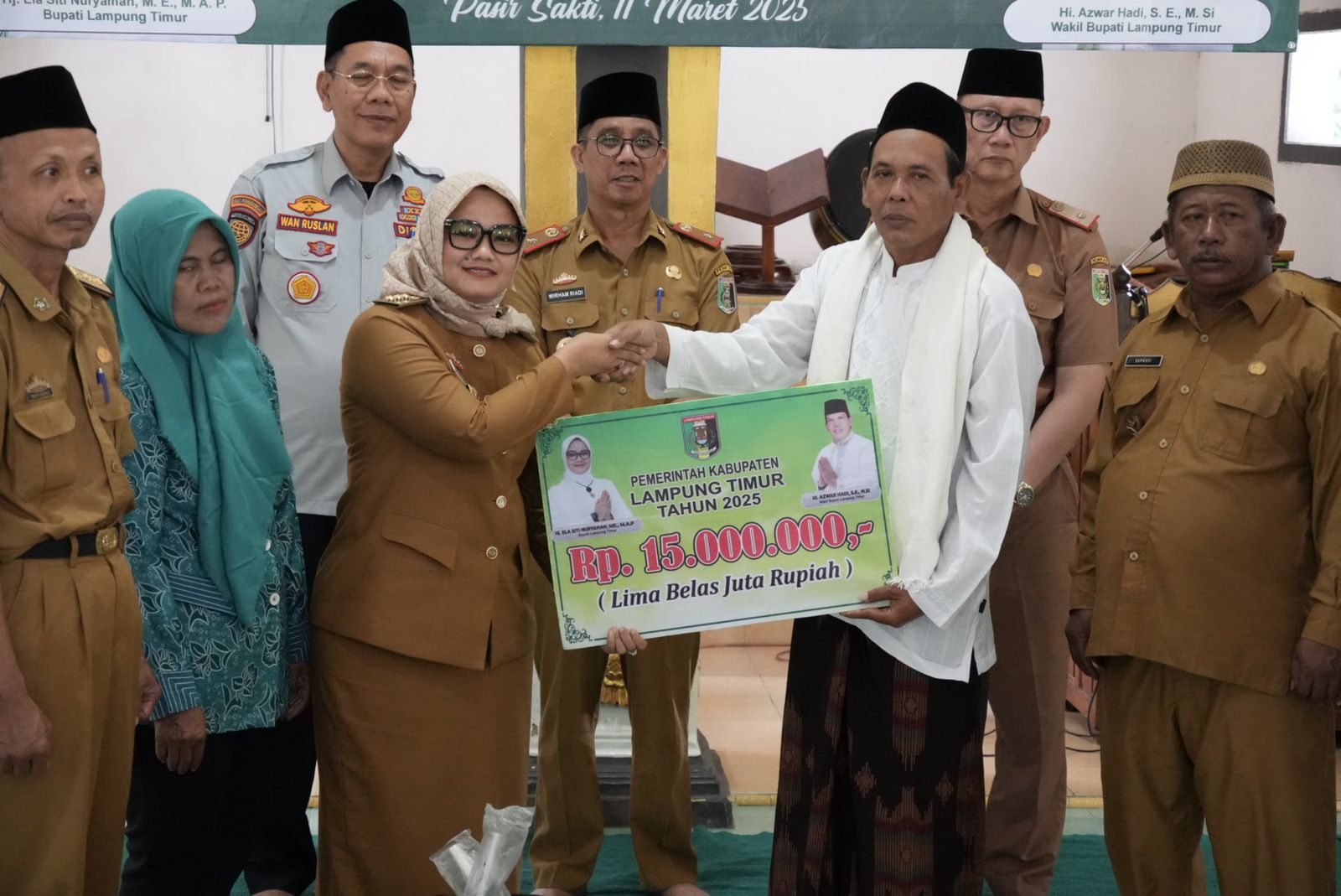 Tak hanya santunan untuk anak yatim dan kaum jompo, Bupati Lampung Timur juga memberikan bantuan uang tunai sebesar 15 juta rupiah untuk kebutuhan operasional dan perawatan Masjid Nurul Iman. Bantuan ini disambut gembira oleh takmir masjid dan warga sekitar, yang menganggapnya sebagai bentuk perhatian pemerintah daerah terhadap sarana ibadah yang menjadi pusat kegiatan umat.