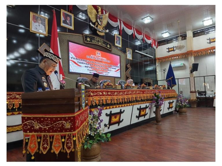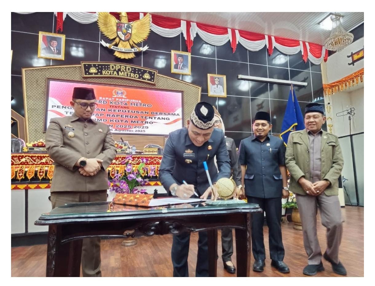Metro — Rancangan Peraturan Daerah (Raperda) tentang Rencana Pembangunan Jangka Menengah Daerah (RPJMD) Kota Metro Tahun 2025–2029 resmi disahkan menjadi Peraturan Daerah (Perda) dalam Rapat Paripurna DPRD Kota Metro yang digelar di ruang sidang paripurna gedung DPRD Kota setempat Rabu, (6/8/2025).